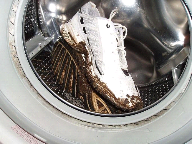Не "любят" воду и кроссовки из натуральной кожи, замша и нубука. Сильно изношенная, расходящаяся по швам обувь может не выдержать стирки. Кроме того, есть опасность, что рассыпающиеся "запчасти", декоративные элементы типа светоотражателей или страз, отваливающиеся в процессе, могут испортить стиральную машину.